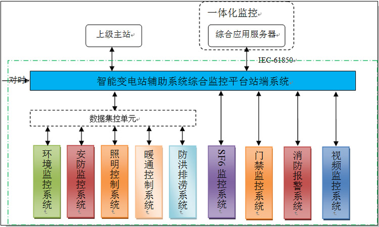 它高度集成了視頻監(jiān)控系統(tǒng)、安全防范系統(tǒng)、環(huán)境監(jiān)控系統(tǒng)、火災(zāi)自動(dòng)報(bào)警系統(tǒng)、智能門禁系統(tǒng)等輔助生產(chǎn)系統(tǒng)。系統(tǒng)采用IEC61850對(duì)不同來(lái)源的數(shù)據(jù)進(jìn)行統(tǒng)一建模,實(shí)現(xiàn)變電站輔助生產(chǎn)系統(tǒng)全景數(shù)據(jù)共享、集中管理、統(tǒng)一存儲(chǔ)及一體化綜合展示。